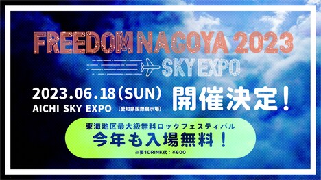 「FREEDOM NAGOYA」は東海地区最大規模の入場無料のロックフェスティバルで、過去には2日間で6万人以上を動員した。イベントの出演アーティストやワンドリンク付き入場引換券の情報は追ってアナウンスされる。