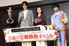 イベントが実施された東京大神宮は“東京のお伊勢さま”とも呼ばれ、縁結びの名所としても有名な神社。目黒と今田は、映画を楽しみにしている人々と良縁が結ばれ、本作が大ヒットするよう神様に祈念した。また2人は今叶えたい思いを巨大絵馬に書いて発表。「作品を通してみなさんが幸せになりますように」と書いた目黒は「映画のタイトル通り、作品を通して少しでも“幸せ”が届いたらいいな、明日もがんばろうと思ってもらえたらうれしいなと考えながら書きました」と思いを語る。「たくさんのご縁に恵まれますように。」と書いた今田は「私自身も縁に恵まれたいという気持ちと、この作品を観ていただいた方にもたくさんのご縁がありますように、という気持ちで書きました」と話した。