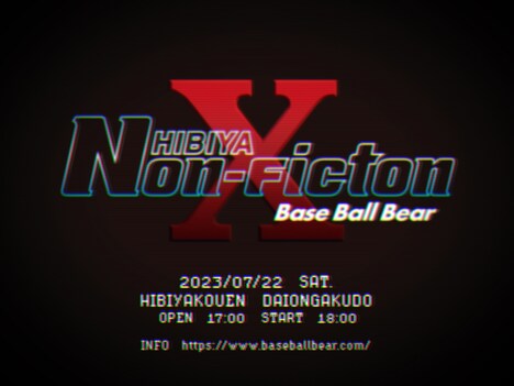 またBase Ball Bearは7月22日に東京・日比谷公園大音楽堂(日比谷野音)にてライブイベント「日比谷ノンフィクションX」を開催。オフィシャルモバイルサイト「べボ部」ではチケットの先行予約を受け付けている。
