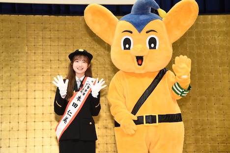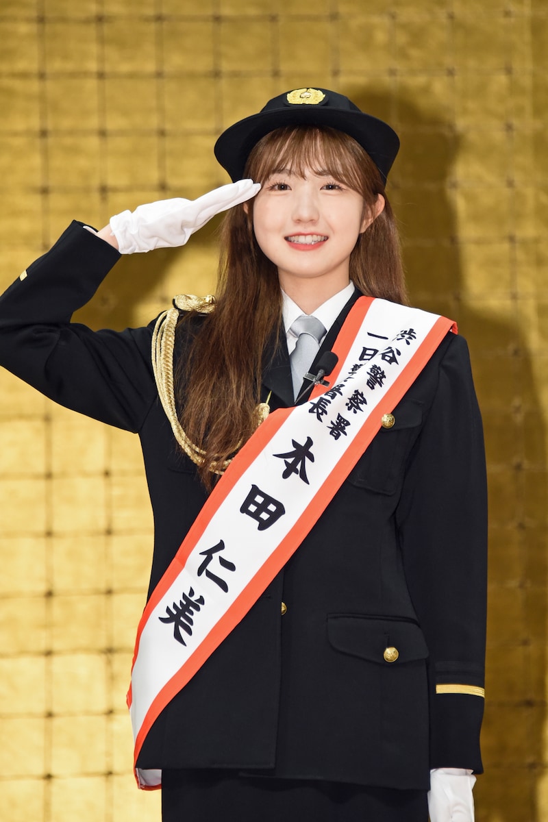 日頃AKB48メンバーのダンスや振付を厳しくチェックすることから“本田警察”と呼ばれているという本田は「今日はリアルな“警察”として、一日署長を務めるということで緊張しています。AKBの衣装ではよく制服を着ますが、警察官の制服は改めて気が引き締まりますね」と意気込む。そして日頃から交通事故に遭わないために「横断歩道を渡るときは青信号でも左右をよく気を付けるようにしています」という意識の高さを明かし、中高生時代はヘルメットをかぶって自転車通学をしていたというエピソードも話した。