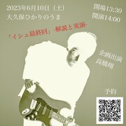 このイベントでは、第一部として僕が1月に発表したイシュというアルバムを自ら掘り下げ制作時の心象や思考の移り変わりや各曲の解説などを盛り込みイシュという作品は自分にとって何をもたらしたのか。そしてこれからの展開展望などをお話したいなと考えています。そして、第二部ではイシュの曲と現在制作中の新曲を織り交ぜたソロライブを行います。お昼のイベントですので時間に気をつけてください。