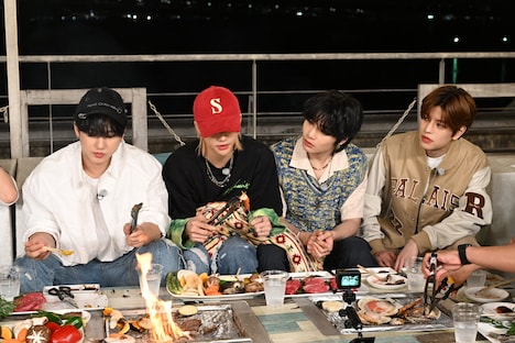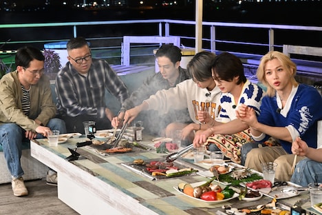 今回配信されたのはStray Kidsメンバーによるアフタートーク。彼らは夜景が楽しめるスポットでバーベキューを楽しみながらロケを振り返った。「日本で行ってみたいところは?」という質問に対しては、ユニバーサル・スタジオ・ジャパンや東京ディズニーランドなどテーマパークの名前が上がる。MCを務めるアルコ&ピースの平子祐希が「富士急ハイランドのジェットコースターやお化け屋敷に連れていきたい」と提案すると、この日のロケで体験した恐怖を思い出したバンチャンとフィリックスが思わず悲鳴を上げる。