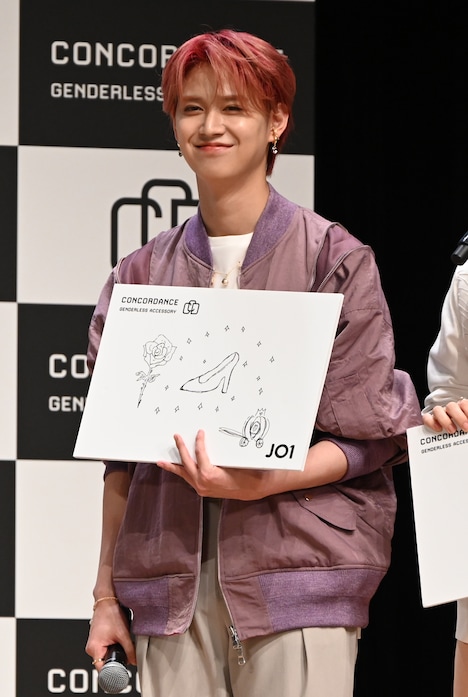 そんな中、独自の視点でアクセサリー選びについて語ったのはダンスリーダーの川尻蓮。「あまりにも鋭利なリングを選ぶと踊ってるときに怪我しちゃうんですよね。なので、優しめの怪我しなそうなリングを選んでます」とこだわりを明かす。與那城が「僕は実際に怪我しましたから」と経験談を語った際、司会から「それだけ、JO1のダンスがハードってことですよね」と声をかけられると、川尻は「ハードにやらせてもらってます」と柔和に微笑んだ。また川西は、「アクセサリーではないんですが」と切り出し、帽子やサングラスなどの小物について言及。「僕、帽子とかサングラスがすごく好きなので、ライブのときとかに『こんな感じのやつを持ってきてほしいです』って衣装さんにお願いすることもあります」と話し、「(衣装さんに)けっこう迷惑かけてると思うんですけど、いつもありがとうございます」と、報道陣越しにスタッフへ感謝を述べた。