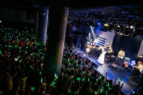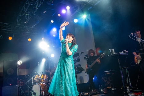 その後、公演はアニメ「たまゆら」関連楽曲ブロック、2017年の活動再開から最新アルバム「green diary」までのブロックと、つつがなく順調に進行。中島の歌声が途切れた瞬間には観客が機転を利かせて大合唱で間を埋めるシーンなども見受けられ、普段のライブとは少し意味合いの違う一体感が形成されていた。