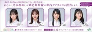 車内放送を担当するメンバーは東京都出身の山下美月、埼玉県出身の田村真佑、栃木県出身の賀喜遥香、宮城県出身の久保史緒里という4名。各地にゆかりのあるメンバーが東京~仙台駅間の車内アナウンスを分担する。乗換案内など乗客に必要な情報は自動放送や乗務員による放送で案内されるほか、「新幹線車内の放送スピーカーに録音機器を近づけるといった行為は、他のお客さまのご迷惑となりますので、ご遠慮ください」といった注意事項もアナウンスされているので、詳しくはJR東日本のオフィシャルサイトで詳細を確認しておこう。