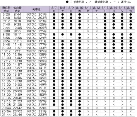 JR東日本では8月14、15日に開催される「真夏の全国ツアー2023」の宮城・セキスイハイムスーパーアリーナ公演に合わせた仙台駅でのキャンペーンを実施。車内放送は東北新幹線の東京駅、仙台駅発着のやまびこ号で行われる。対象となるのは、8月7~10日の全時間帯の列車、8月13~16日の東京駅を6時から10時台に出発する列車、仙台駅を6時から9時台に出発する列車だ。なお、はやぶさ号、こまち号、なすの号や、仙台より北に運行するやまびこ号は対象外。さらに一部のやまびこ号と併結されているつばさ号も対象外となるのでご注意を。