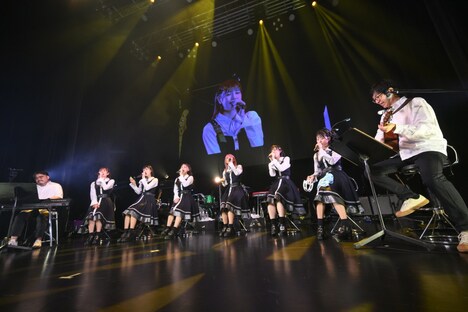 全編フルバンドによるパフォーマンスがおなじみとなっているGran☆Cielのワンマンライブ。休養中の望月希美奈を除くメンバー6人は、“Cielバンド”がスタンバイするステージに姿を現すと、「Baby Summer」「夏空」「 ナツオト」とサマーチューンを連発し、爽快にライブの幕を開けた。自己紹介を挟んだ次のブロックでは「願いYou & I」など3曲が披露され、バンドが生み出すエネルギッシュなサウンドに情感のこもった歌声が重なる。場内に心地よい音楽が充満する中、フロアの観客は時折ペンライトを振る手を止め、ステージ上の光景に見とれていた。