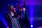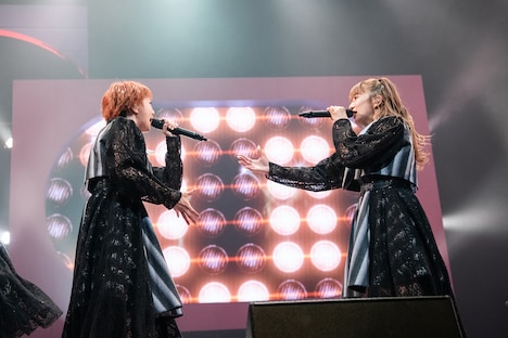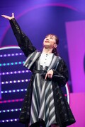 「ebismの世界を堪能してください」という真山の曲振りからスタートしたのは「禁断のカルマ」。先ほどまでののんびりとした雰囲気から一転、好戦的にこの曲をパフォーマンスした10人は、続いてステージセットから伸びる鎖に右手首をつないだ状態で「バタフライエフェクト」を歌唱した。風見の「皆さん自分を解き放って! もっともっと自由になって! 最後の最後まで盛り上がっていきましょう!」という声を機に、鎖から放たれたメンバーは、エビ中のレパートリーとして定着している椎名林檎「自由へ道連れ」のカバーを高らかに歌い上げる。そして「Bang Bang Beat」、間髪をいれずにポップな新曲「はみだせGirls」を届け、ラストはスモークが噴出する中、アッパーチューン「イート・ザ・大目玉」をアグレッシブに披露してステージをあとにした。