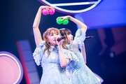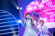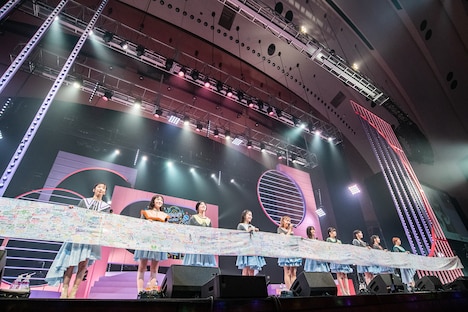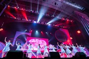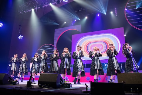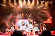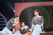 1人ステージに残された中山は、本ツアーで恒例となっていた“モニターくん”とコミュニケーションを取るべく、会場のファンとともに「モニターくん!」とステージ後方のモニタに向かって声をかける。モニターくんが浮かべた文章にハツラツと言葉を返していた中山は、「ファイナルも最高に盛り上げてください!」という振りを受けて、自身の自己紹介“りこ三三七拍子”をパワフルに披露。そのあとはステージに登場した桜木と桜井とともに「きゅるん」を歌い、ユニットコーナーへとつなげた。続いてステージには小学生、幼稚園児、中学生の制服に身を包んだ真山、安本、星名が姿を現す。この3人が歌唱したのは「熟女になっても」。曲中に“今日の宿題”として安本が「大好きを伝えるためのひと言」を発表するなど、3人はコミカルなやり取りを織り交ぜながらこの曲を届けた。ユニットコーナーのラストを飾ったのは、小林、小久保、風見、仲村。4人は「I'm your MANAGER!!!」を歌い、最後は客席に向けて「がんばれー!」と手を振った。