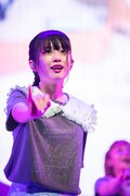 ハードなダンストラック「参枚目のタフガキ」を力強く歌ったあと、エビ中は勢いよく展開してきたここまでのライブを振り返る。真山が自身の前髪が汗でバラバラになってしまったと話すと、小久保は「今日の柚乃の前髪きれいじゃないですか? スプレーでガチガチに固めてるんです」と“アイドル前髪”が保たれていることをアピール。真山の「いいね、前髪の毛量分けてほしい」という感想を、小久保は「あはは」と愛想笑いでスルーし、そのテンポ感に客席から笑い声が起こった。その後、中山に「とびっきりかわいくお願いします!」と頼まれた桜井による曲振りから、10人はポップなナンバー「kyo-do?」をパフォーマンス。そして中山を除く9人が一旦ステージをあとにした。