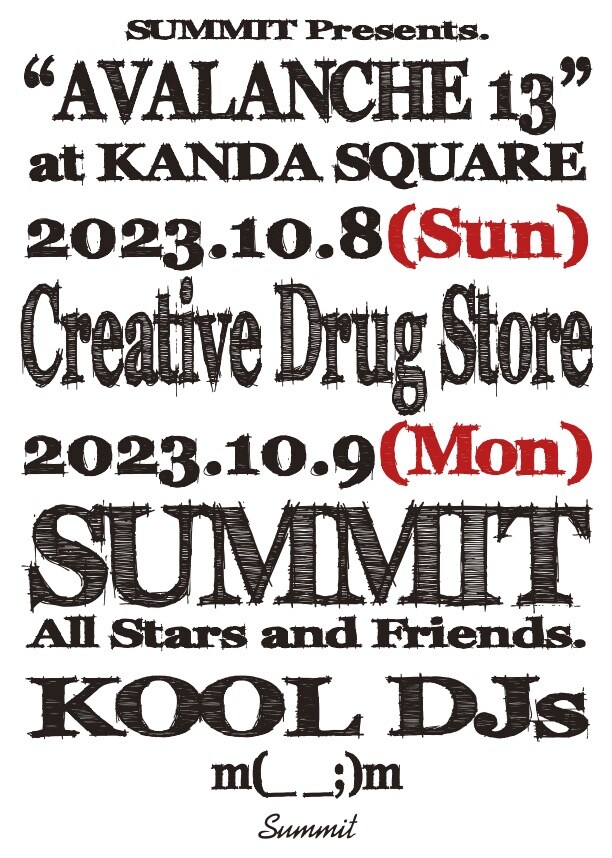SUMMIT主催「AVALANCHE」2DAYS開催 初日はCDSワンマン、2日目はオールスター集合