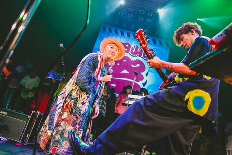 場内に流れる「東京音頭」に導かれるように登場した吉田山田は全方位のオーディエンスを楽しませるために背中合わせでセンターステージに立ち、、アコースティックアレンジの「魔法のような」でライブをスタートさせた。ミドルテンポのしっとりとした「魔法のような」でオーディエンスの心をつかんだ彼らが「てんてんてんて」のイントロを弾き始めると、席を立ってライブを楽しむファンが続出。総立ちのオーディエンスが打ち鳴らす手拍子の中、2人の歌声が会場内に響きわたった。