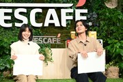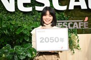 ネスカフェを通じてサステナビリティに取り組むことを表明しているネスレ日本。会見では“おいしいコーヒーを飲み続けられる未来”に関するクイズが出題された。司会者が「気温上昇が続いて適切な対策を取らない場合、コーヒー栽培に適した地域が最大で50%減少するとされているのは何年か」と問いかけ、2人は2024年と2050年の2択の中から2050年を選択し見事正解した。