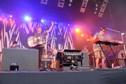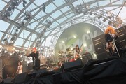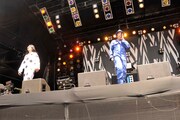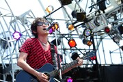 昨年に続き、2日目のGRASS STAGEのトリを担当したのはユニコーン。映画「インディ・ジョーンズ」のテーマ曲をバックに、探検隊風の衣装に身を包んだメンバーが登場すると大歓声がフィールドにこだました。今回はツアー真っ最中ということもあり、5人はバンドの最新モードを届けるセットリストを用意。火炎や花火といった演出も見どころのド派手なステージで、2日目を締めくくった。