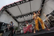 最も暑い時間帯にLAKE STAGEに登場したSPECIAL OTHERSは、軽やかなアンサンブルでさわやかな風をオーディエンスに届けた。さらに終盤では、9月にKj(Dragon Ash)とのコラボシングル「Sailin'」をリリースすることをアナウンスし、Kjとともに同曲をオーディエンスの前で初披露した。またWING TENTのモーモールルギャバンのライブは、人があふれかえるほどの大盛況に。ラストナンバーの「サイケな恋人」では、恒例とも言える観客全員による盛大な“パンティコール”が響きわたっていた。