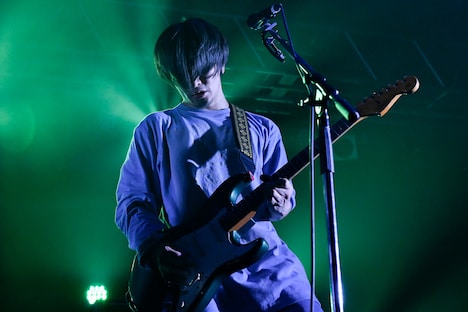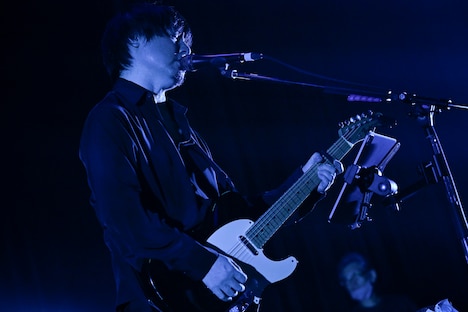 syrup16gは1曲目から新曲を投下。ゆらめくような美しいアンサンブルがじんわりと場内を満たしていく。その心地よさにオーディエンスが浸っていると、syrup16gはさらに新曲を続け、赤い照明の中で熱を帯びたサウンドに乗せて気だるげに言葉を吐き捨てた。五十嵐隆(Vo, G)は「全部新曲やります」と告げてオーディエンスを驚かせたかと思えば、「嘘! あと2曲」と茶目っ気たっぷりに翻弄。その後も中毒性のあるギターリフがループする楽曲など、冒頭から4曲の新曲を披露して観る者に衝撃を与えた。