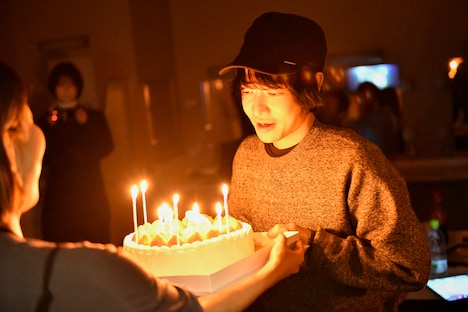等間隔で刻まれるベースに乾いたギターサウンドが重なり、「神のカルマ」の演奏がスタートすると、フロアから大きな歓声が上がる。五十嵐のシャウトを皮切りにsyrup16gは気迫に満ちたプレイを繰り広げ、オーディエンスの心を鷲掴みにした。さらに彼らは「生活」「天才」と多くの人々に愛されてきた楽曲を惜しみなく連投。言葉を挟むことなく、生誕祭と言えども変わらない朴訥としたスタイルで、熱演を通して木下に祝福を贈った。最後にsyrup16gは「落堕」で衝動のままに音を鳴らす。そしてアウトロで五十嵐が「木下理樹、誕生日おめでとう!」と絶叫し、残響音の中で3人はステージを去っていった。