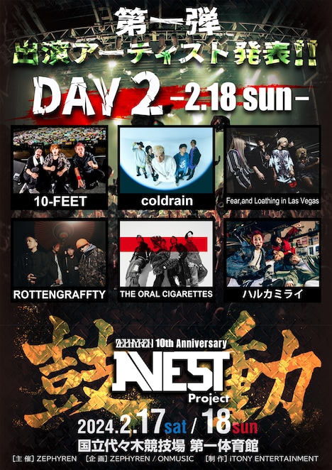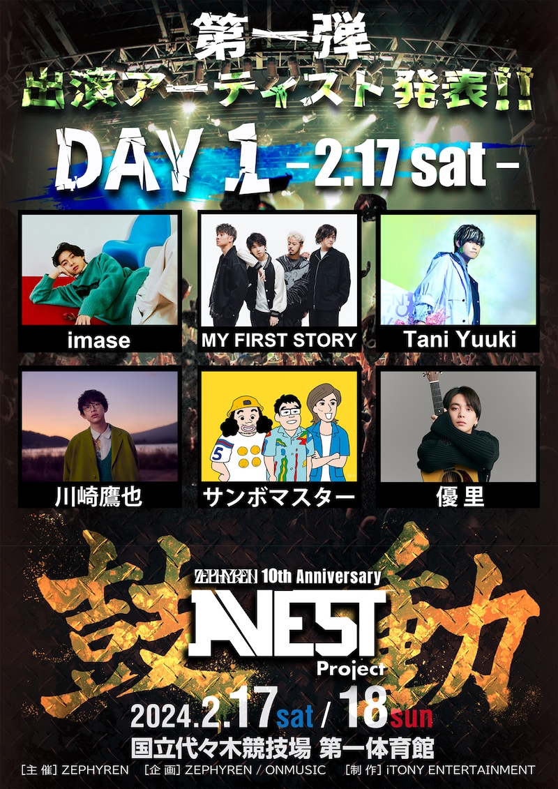 2024年2月17、18日に東京・国立代々木競技場第一体育館で行われるライブイベント「Zephyren 10th Anniversary A.V.E.S.T project -鼓動-」の第1弾出演アーティストが発表された。