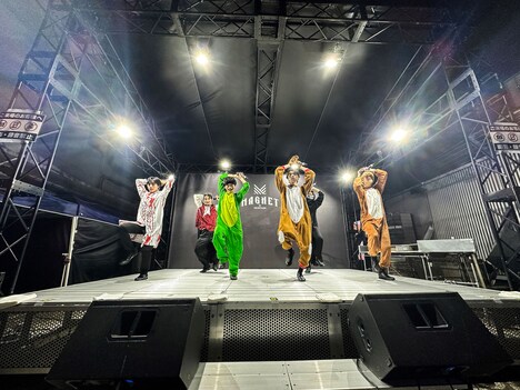 この日のイベントは“ハロウィンスペシャル”として、メンバーが仮装した姿をLien(Lienelファンの呼称)に披露。普段とは異なるハロウィン仕様のBGMで登場した彼らは、Ado「唱」に乗せてユニバーサル・スタジオ・ジャパン「ハロウィーン・ホラー・ナイト」の “ゾンビ・デ・ダンス”を踊り、Lienを驚かせた。