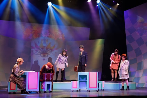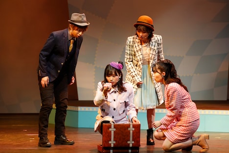 宝石持ち逃げ窃盗犯のケイを演じる清野と、その妹であるメグ役の小林は2人のシーンでシリアスな表情を浮かべ、Mr.ショウ役の山崎は、マネージャーの一条を演じる一岡が見守る中、観客を巻き込んでのマジックもステージ上で披露。マコ役の里吉、ハルカ役の江口ら、東日本のスパイ、ユキ役の西田、リサ役の高瀬ら、西日本のスパイは、カフェを舞台に軽妙に掛け合い、ナナミ役の岡村は、ピンクに染まったステージでキュートなソロ歌唱を繰り広げた。