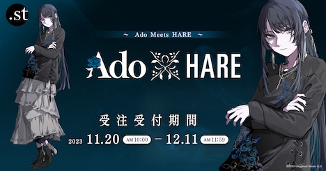 .st(ドットエスティ)の10店舗、Webストアでは11月20日にアイテムの予約受付がスタート。予約購入者には特典として、コラボアイテムを着用したAdoのステッカーやロゴステッカーがプレゼントされる。さらにHAREの5店舗、ドットエスティストアの10店舗ではAdoのパネルが展示が予定されている。ドットエスティのYouTubeではAdoの人気曲「レディメイド」が使用されたショートムービーが公開中。