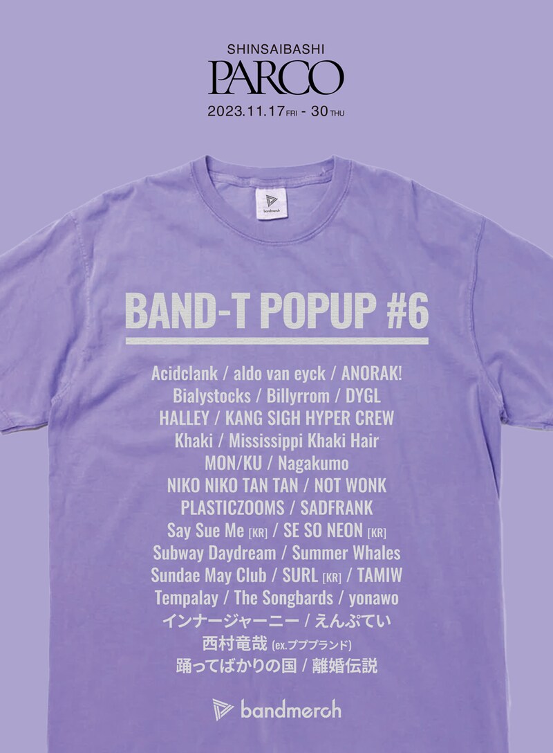 また「BAND-T POPUP #6」の開催を記念したライブイベント「Lullaby -BAND-T POPUP #6 SPECIAL LIVE-」「Lullaby Extra -BAND-T POPUP #6 FREE LIVE-」が11月23日、「心斎橋PARCO 3周年 CLOSING PARTY presented by Bandmerch」が26日に心斎橋PARCOにて行われる。さらに「BAND-T POPUP #6」と連動した企画「dancing clothing」が大阪にて2公演、東京にて3公演開催されることも決まっている。