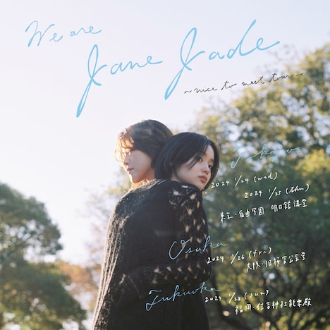 Jane Jadeは楽曲配信の発表に合わせて、2024年1月に東京、大阪、福岡を回るライブツアー「We are Jane Jade~nice to meet tour~」の開催をアナウンス。さらにこのツアーの会場限定で「moonlight」を含む2曲入りの7inchアナログレコードを販売することを発表した。ツアーのチケットには通常のライブチケットと、2人の直筆サインが入ったアナログレコードが付属する“直筆サイン入りアナログ付きチケット”が用意される。アナログは在庫がある場合のみ、ツアー終了後にオンラインサイトで販売される予定だが、Jane Jadeのサインが入ったレコードを手に入れられるのは、このライブチケットを購入した人のみとなる。ローソンチケットでは、12月6日23:50までチケットの先行予約を受付中。