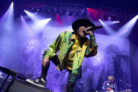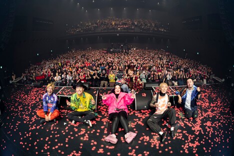 その後5人は「Re:member」「SUMMER FREAK」とFLOWの「NARUTO」シリーズへの提供曲を連投。エネルギッシュなプレイに乗せて「NARUTO」への愛を惜しむことなく爆発させていく。Hearts Growの「ユラユラ」ではKOHSHIとKEIGOの優しい歌声が重なり合い、nobodyknows+の「Hero's Come Back!!」では重厚なメタルサウンドに乗せてパワフルなラップの掛け合いが行われた。同世代で元レーベルメイトのHOME MADE 家族の楽曲「流れ星~Shooting Star~」で温かな空気を生み出したあと、KEIGOは「『NARUTO縛り』実現できましたー! とんでもないよね! 火影岩になってるのよ」と背景の火影岩を指差す。「大それすぎですよ。俺たちは何を成し遂げたんだ? 何代目なんだ?」とKOHSHIが首を傾げると、KEIGOは「下忍下忍!」と大笑いした。