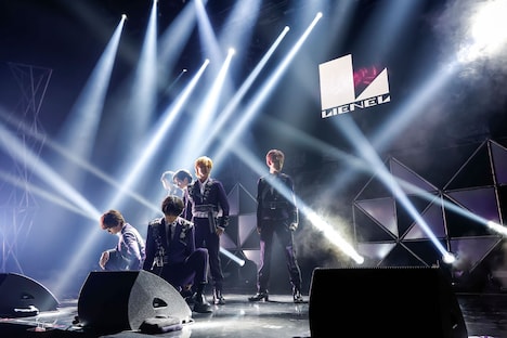 Lienelの記念すべき1stワンマンは、彼らのデビュー曲「LOVE Communication」で幕を開けた。Lienの大歓声が6人を迎える中、武田創世は「皆さん俺たちがLienelです! 今日は全力で盛り上がっていきましょう!」と元気いっぱいに呼びかける。グループカラーの紫色のジャケットにビジューの輝きをまとった彼らは平均年齢16歳の若さを感じさせない艶やかな歌声とダンスで冒頭からオーディエンスを引き込み、高岡ミロはブリーチしたヘアカラーをお披露目した森田璃空の髪を指差してLienの心をがっしりとつかんだ。