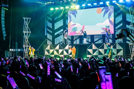 Lienelのリスペクトが込もった全力の“先輩曲メドレー”に会場がヒートアップする中、ライブはアッパーチューン「Party Now!」でクライマックスへと加速していく。間奏に用意された長尺のダンスブロックでは息を合わせたパワフルな群舞を見せた6人。「皆さんの歓声と僕たちの熱でここを夏にしましょう!」という高岡の呼びかけからスタートしたサマーチューン「Summer Boy! Summer Girl!」ではタオルを片手にステージにめいっぱい広がり、全力の煽りで一体感を求めるメンバーの姿に、Lienも全力でペンライトを振って熱狂の空間を作り上げた。