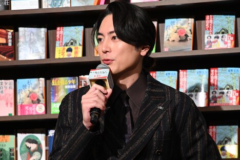 1月12日公開の「ある閉ざされた雪の山荘で」は、東野圭吾による同名小説を実写化した作品。登場人物が全員役者で、彼らが挑む新作舞台の主役の座をかけたオーディションの最終選考の場である“大雪で外部との接触が絶たれた山荘”という架空の密室空間で起こる連続殺人事件が描かれる。公開直前カウントダウンイベントには主演を務める重岡のほかに、メインキャストの