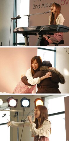 イベントでは、まず最初にトーク&ミニライブが行われた。「Lipstick」「愛しい人へ」などのシングル曲はもちろん、大阪では「My Darling」、東京では「Visit of love」とそれぞれの会場でアルバム収録の最新楽曲を披露。アップテンポな曲では元気いっぱいのパフォーマンスを見せ、弾き語りのバラードでは、感動のあまり涙ぐむファンも出るほどにしっとりと歌い上げた。