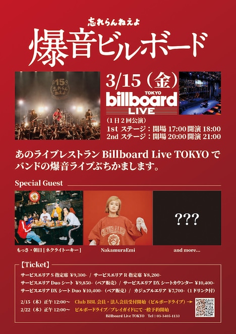ナタリー 忘れらんねえよ「爆音ビルボード」にNakamuraEmi、ネクライトーキーもっさ&朝日出演: 忘れらんねえよが3月15日に東京・Billboard Live TOKYOでライブ「爆音ビルボード」を開催する。 https://t.co/ua1hnCNweY