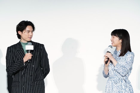 お互いを思いやりながら前向きに生きようとする山添と藤沢の物語にちなんで、舞台挨拶では「相手に対して普段から心がけていること」というトークテーマが展開された。松村が「自己満足ですけど、歩いて移動しているとき、後ろの人たちの会話が弾んでいると、ちょっとした段差に気付かないんじゃないかと思って。でも『段差あるから気を付けて』と言うのはわざとらしい。だから段差に差し掛かったら『おっと』って言いながら深めに沈むようにしています。普段はグループ活動をしているんですが、誰にもけがしてほしくないので」と話すと、「すみません、(気遣いを)察知できていなかった……」と上白石が申し訳なさそうに口にした。