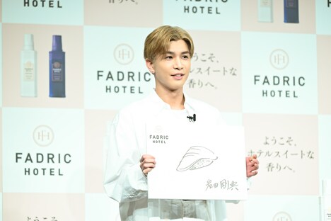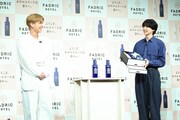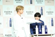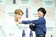 岩田は「リュクスリネンの香り」をイメージした白の衣装、吉野は「ヒーリングナイトの香り」をイメージした紺色の衣装で登場。各々の衣装には実際に「FADRIC HOTEL」が用いられているということで、2人がお互いの香りを嗅ぎ合う場面も。「ファンの皆さんに怒られちゃいます(笑)」と恐縮しながら吉野に近づいた岩田は「さわやかなラベンダーの香りがパッと広がります」と説明しつつ「これはどの層のファンの方が喜ぶんですか?(笑)」と報道陣に問いかけていた。