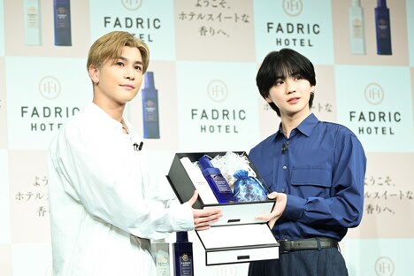 「FADRIC HOTEL」は“ホテルスイートな香り”をコンセプトに上質なライフスタイルをサポートするブランド。明日2月15日からは岩田と吉野が兄弟役を演じるテレビCMが関東、関西、中京エリアにてオンエアされる。