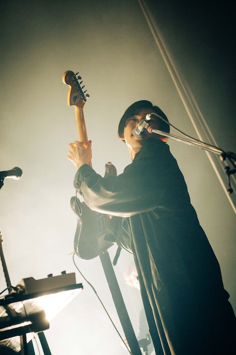 君島のメロウな魅力を存分に味わえる「19℃」、ボイスチェンジャーを使用してモダンなポップセンスを垣間見せる「˖嵐+ ̊ˑ༄」などを経て、「遠視のコントラルト」でライブは後半戦へ。この曲では絡み合う2本のギターサウンドと石若のドラムソロが観客の視線を釘付けにした。続く「No heavenly」ではグランジロックを彷彿させる歪んだギターサウンドがオーディエンスを圧倒し、ラストは「c r a z y」が届けられた。
