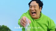 このCMでは岡崎体育とセントチヒロ・チッチが、本日より発売された100%再生素材生まれのボトルに入った「い・ろ・は・す 天然水」を訴求。飲み終わったペットボトルをたたんでリサイクルすることによって、新しい「い・ろ・は・す」につながっていくことをポップな歌とダンスで表現している。