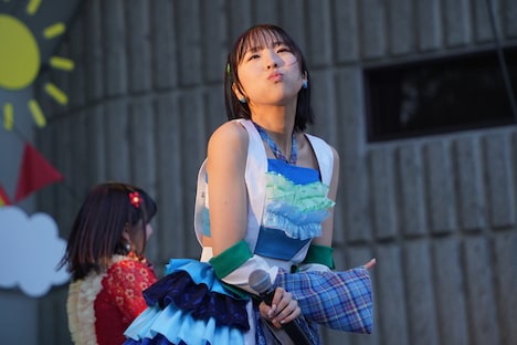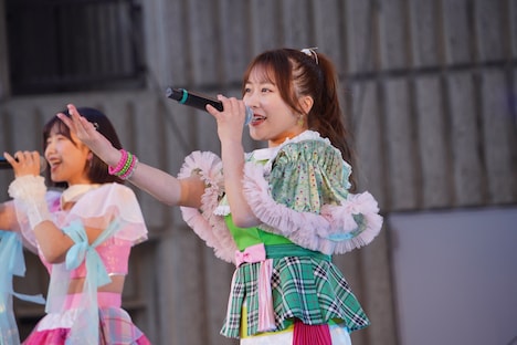ライブに戻るとアプガ(2)は「ポップコーン」「正解ですっ!」とかわいく弾ける楽曲で観客を楽しませる。「らびっちゅ♡」はメンバー5人が萌えゼリフを入れる特別バージョンで歌唱した。気がつけば陽も落ち、野音は夜へと向かっていく。アプガ(2)は、クールな「強がりライライライ」で大人っぽい姿を見せ、「シーユーだけ。」ではドラマチックなエモさを歌とダンスで届ける。さらに5人はカラフルなミラーボールの光が輝く中、ディスコチューン「ぱーれぇ~」をドロップして野音をダンスフロアに変えると、続く「ナツメグ」で夏の熱気と爽快さを観客に届けた。