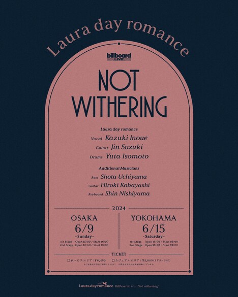 Laura day romanceがBillboard Liveのステージに立つのは今回が初。Billboard Liveのオフィシャルサイトでは、3月29日12:00からClub BBL会員を対象にしたチケット先行予約を受け付ける。一般予約は4月5日12:00に受付がスタートする。