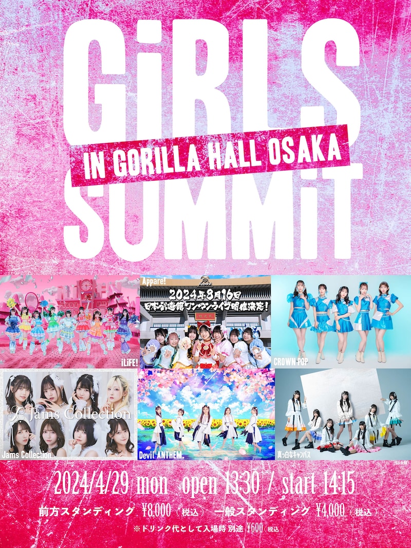 ライブイベント「GiRLS SUMMiT IN GORILLA HALL OSAKA」が4月29日に大阪・GORILLA HALL OSAKAにて開催される。