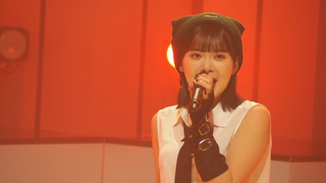 楽曲を通して私が強い女になりたいと思っての選曲となりました(笑)。基本的にめちゃめちゃ上がり症で、人目を気にするタイプなんです。私はこういう道で行くんだみたいな強さを持った女性たちの楽曲を歌うことで、自分を強くできたらと思いました。ソロはハロプロ研修生のころの実力診断テストや、「ソロフェス」もありましたが、研修生時代の名残りで審査されているみたいな気持ちになっちゃうんです(笑)。すごく緊張しちゃうので。今日の私の目標は「緊張すると言わない」でした(笑)。言葉にしたらやられちゃうので絶対に言わないぞーという気持ちで来ました。曲を選ぶのは大変でしたが、放送のときに自分が選んだ歌詞を画面に出していただくことになっていたので、歌詞にもこだわって選びました。見ている方には目と耳でも楽しめると思います。今日もたくさんのカメラで撮影されていると本当に気が抜けないなと緊張しましたが、楽曲のおかげでちょっと強くなった気がしました(笑)。