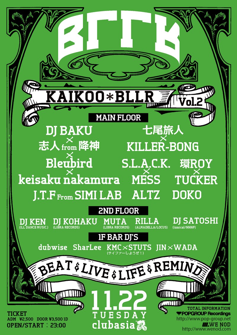 11月22日に東京・club asiaでイベント「KAIKOO*BLLR Vol.2」が開催される。