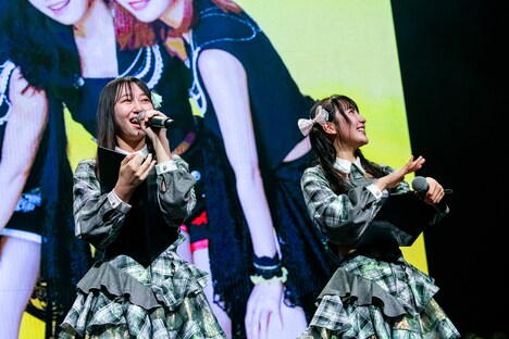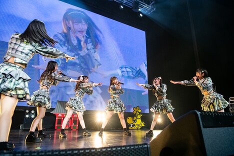 #HASHTAG RECORD所属アーティスト4組のトップバッターを務めた#Mooove!も、#ババババンビと同じく新メンバーが2人加入し、4月6日のライブで新体制をお披露目したばかり。姫野ひなの、石原さき、赤間四季、中本こまり、そして新メンバーの愛梨ここ、久喜なほの計6人がステージにそろうと、「カタカナサマー」「君隣のパノラマ」とさわやかな楽曲を2連発。自己紹介で新体制をしっかりアピールし、さらに新曲「ENDRESS BET」を含む4曲をパフォーマンスした。ラストの「最後の花火」ではステージ背面のスクリーンいっぱいにアニメーションの花火が広がり、ひと足早い夏を感じさせた。