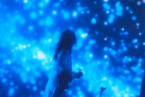 場内を彩る美しいライティングや、ダイナミックなカメラワークなど巨大モニターを用いた映像演出が目を引いた本公演。その中でぼんやりと灯る照明のもと披露された「若者たち」もハイライトの1つだったと言えるだろう。音楽ナタリーが昨年行った最新アルバム「12 hugs (like butterflies)」のインタビューで、河西ゆりか(B)は「大きなステージに立っても初心を忘れないように、羊文学としての柱をしっかり立てたい」と本公演に臨む心境を語っており、インディーズ期の楽曲である「若者たち」をこの大舞台で3人だけでじっくりと演奏する姿からは、河西の言うバンドの“初心”を十分に感じ取ることができた。