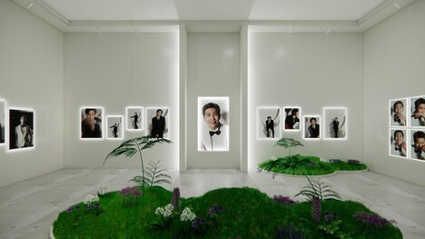メンバーごとに展開される、コンセプトの異なる写真展示「7ROOMS」も本展覧会の見どころの1つ。自然や芸術を愛するRMをフィーチャーした「RM's NATURE PLANET」のコンセプトは室内庭園。空間の中央に庭園を模ったグリーンの造作が配置され、これを囲うように、壁面にはソロカットがずらり。JINの写真展示は「Jin's SATELLITE」と名付けられ、「ARMY(BTSファンの呼称)と私たちはお互いを見つめていて、ARMYは私のすべてだ」という彼の言葉からのインスピレーションのもと制作された、月の公転を表現した幻想的な空間が広がる。