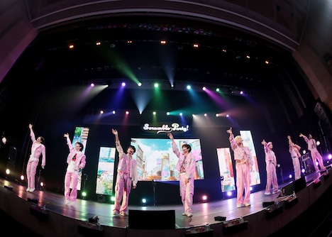 「みんなと今この場所で出会えていることは、奇跡ではなく“Destiny”」という八神のまっすぐな言葉とともに届けられた「Destiny」を終え、ライブはMCタイムへ。トークのお題を決める「トークボックス」から志賀が引いたのは「生カメに向かってキュンセリフ」と書かれた紙で、メンバーは正面のムービーカメラに向かって1人ずつ甘いセリフを告げていくことになった。「今日ライブ終わったら、デートでも行く?」とさわやかに語りかけてメンバーから「いいですね!」という声を集めた志賀が口火を切ると、阿久根は「俺と付き合ってくれへん?」、竹野世梛は「ほんま、めっちゃ好きやで」と、大阪出身のキャラを生かした関西弁でCOOLerにアピールする。つぶらな瞳で「今日も愛してくれる?」と告げた山本に続き、八神はなぜかターンを決めながら「僕と付き合ってください!」と告白。「お前の目、きれいだね」と言って、仲間たちから「旺ちゃんにしてはよかった」という評価を受けた中村旺太郎に続き、「とっしーって呼んでください!」が決めゼリフの筒井俊旭は「これからもずっと隣でとっしーって呼んでな?」と“告白仕様”にセリフをアレンジする。いつのまにかトリを担うことになってしまった千田は、照れくさそうにしながらも「ねえ、今ほかの人見てたでしょ? 俺だけ見てよ」とまっすぐな愛情表現で客席からの歓声を誘い、これにはメンバーも「何これ! カッコいい!」と絶賛の声を上げていた。