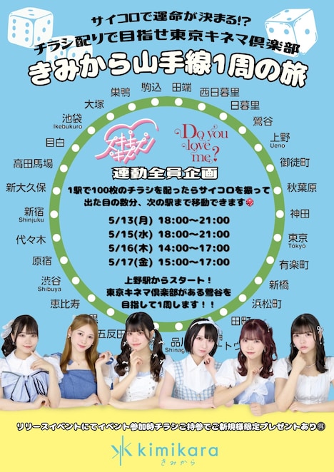 本作リリースに伴い、都内近郊のCDショップやイベント会場にてリリースイベントの開催が決定。6月26日には東京・東京キネマ倶楽部にて3rdワンマンライブが行われる。また5月13日から、kimikaraはチラシを配って山手線1周を目指すキャンペーンを実施。チラシ100枚を配るたびにサイコロを振り、出た目の数の駅まで進むことができるというルールで、上野駅から外回りで鶯谷駅を目指す。