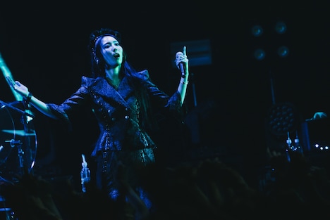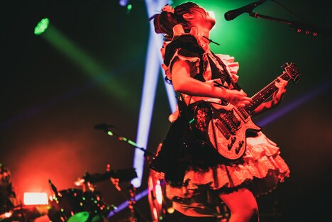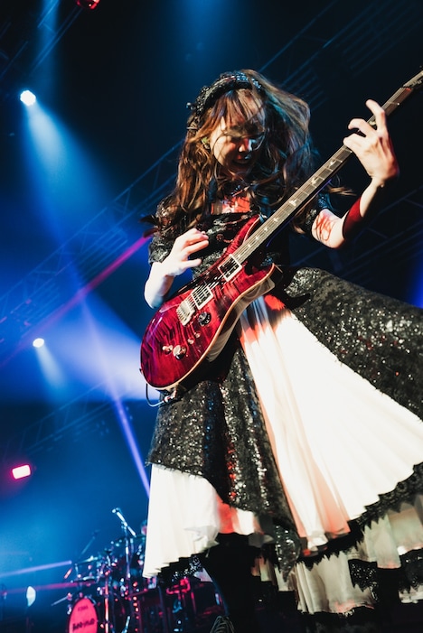 ライブ後半に差し掛かると、SAIKIの芯のある歌声をじっくりと聴かせる楽曲が連続。「Memorable」では小鳩がアコースティックギターを手にSAIKIとともに美しいハーモニーを響かせ、「about Us」ではシンガロングで場内に感動的なムードが広がった。またIncubusのマイク・アインジガー(G)と共作した最新曲「Bestie」が披露され、ご主人様とお嬢様(BAND-MAIDファンの呼称)が大いに沸き立った。