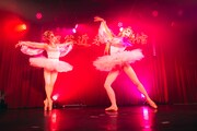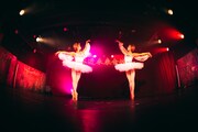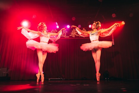 休憩のあとに始まったのは「妖精さんの素敵なダンスショー」。妖精さんとは、本イベントのキービジュアルに描かれた作中の歓楽街・小姐路(シウジェロード)のスターだ。スターダンサーズバレエ団のバレリーナ2人がこの妖精さんを演じ、華麗なダンスで観客を魅了。ゲーム内の妖精さんに扮したメイク、ゲームキャラクターと同じ振付を取り入れたバレリーナのパフォーマンスに、「かわいいー」と黄色い歓声が飛び交う場面もあり、場内は大きく盛り上がった。